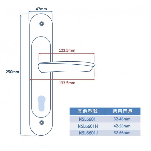 適用門厚:32~46mm (鎖匙組合70mm)